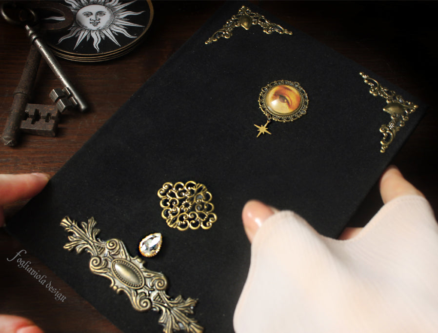 Il Diario del Terzo Occhio è una creazione unica che invita ad esplorare l’universo celato dentro di sé. La copertina in lussuoso velluto nero, arricchita da angoliere, preziosi dettagli in ferro oltre e una piccola stella del Nord per non perdere mai la via.. ha un enigmatico occhio centrale, simbolo del potere dell’intuizione e passaggio verso mondi invisibili. Perfetto per chi cerca un luogo sicuro dove annotare esperienze spirituali, riflessioni esoteriche, percorsi di crescita personale o semplicemente lasciarsi incantare dalla poesia e dal mistero. Un vero talismano quotidiano dalle classiche dimensioni A5 (14x21 cm) e pagine bianche a righe.