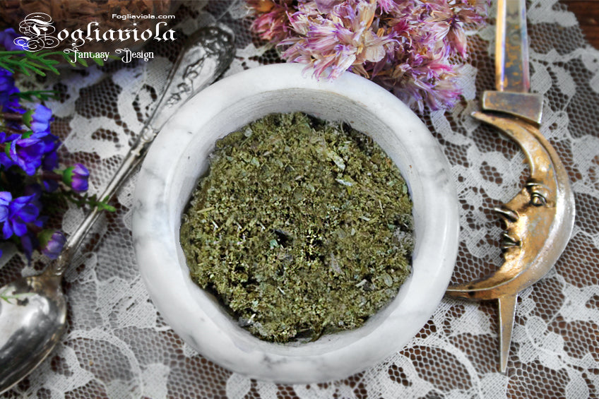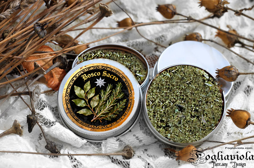 Ideale per le feste di fine anno e nei rituali di rinnovo, Bosco Sacro è realizzato con erbe biologiche coltivate in Italia raccolte, seccate, sgranate e sminuzzate a mano secondo ciclo stagionale e senza uso di agenti chimici esterni. Con lo spirito gioioso e frizzante delle fresche sere invernali e dei legni del sottobosco tinteggiati di brina, per purificare e proteggere, ha un profumo campestre stratificato e legnoso da usare in pizzichi su carbonella, per misture, vestizioni. Arriva in un delizioso contenitore di alluminio (circa 10gr) che può essere riutilizzato a piacere dopo l'uso o ricaricato al prossimo ordine, rivelandosi un simpatico pensiero anche da regalare.